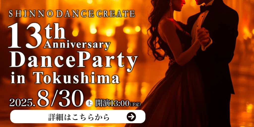 年に一度の特別な夜、SHINNO DANCE CREATE 13th Anniversary Dance Partyが2025年8月30日に開催決定!生徒さんたちの晴れ舞台と、プロダンサーによる豪華ステージ。そして今回はなんと、統一全日本チャンピオン・野村直人&山崎かりん組がゲスト出演!躍動感あふれるステージを、ぜひ会場でご覧ください。